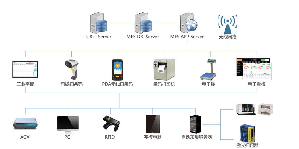 智能制造不但要生產自動化、信息化,更需跨業(yè)務層級整合信息系統(tǒng),實現(xiàn)業(yè)務層、執(zhí)行層、監(jiān)控層、設備層的互聯(lián)互通。MES系統(tǒng)是鏈接業(yè)務層與設備監(jiān)控層的橋梁,通過MES可以實時掌控生產進度與監(jiān)控異常。